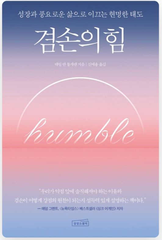 겸손이란 단순히 자신을 낮추는 태도라고 생각했었습니다. 저 역시 오랫동안 그렇게 오해하며 살아왔던 거 같습니다. 하지만 '겸손의 힘'을 읽고 나서 완전히 다른 관점을 갖게 되었습니다. 진정한 겸손은 자신을 정확히 파악하고, 타인의 가치를 인정하며, 끊임없이 배우려는 태도라고 말입니다. 이는 개인의 성장은 물론 조직과 사회 전체에 긍정적인 영향을 미친다고 생각합니다.
